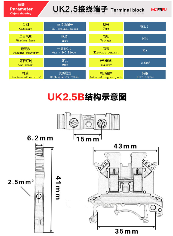 Through Terminal Block ST801/ KF801/DG801 Pitch 10mm Fuse Holder with Protective Tabs